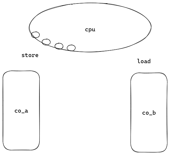 若从协程a转换到协程b: 将co_a中寄存器的值保存后,然后加载co_b。 如下代码所示: